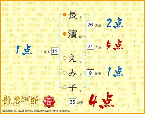 長濱えみ子さんの総運は35画の4点!