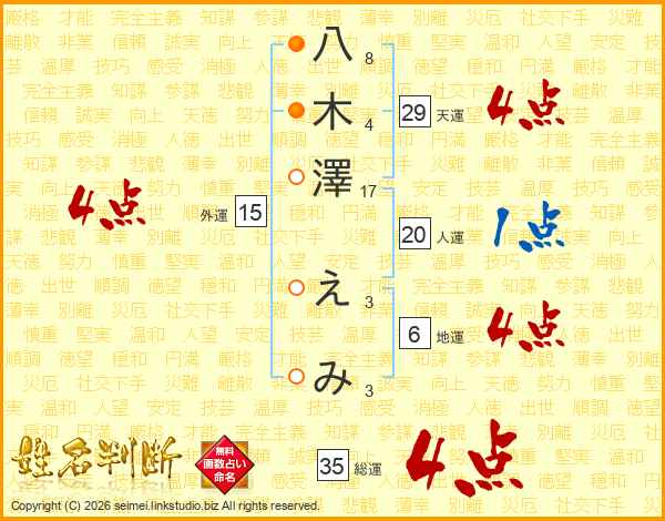 八木澤えみさんの総運は35画の4点!