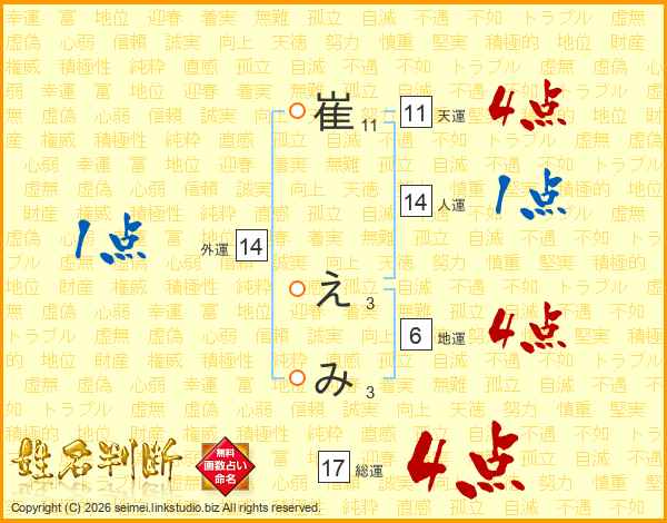 崔えみさんの総運は17画の4点!