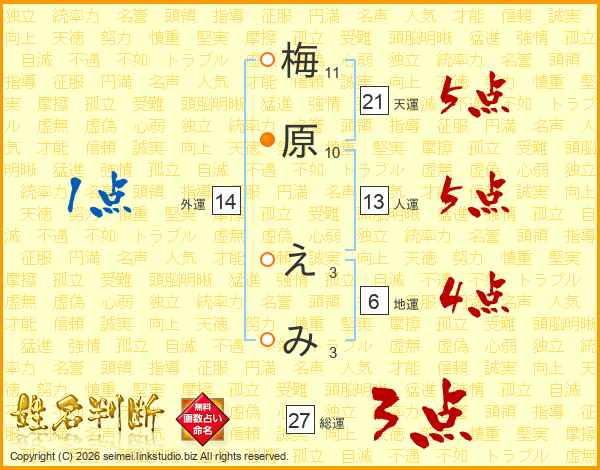 梅原えみさんの総運は27画の3点!