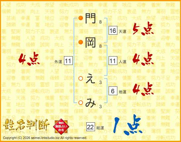 門岡えみさんの総運は22画の1点!