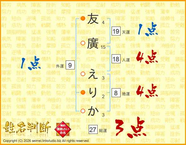 友(4画)廣(15画) え(3画)り(2画)か(3画)