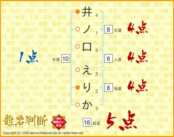井ノ口えりかさんの総運は16画の5点!