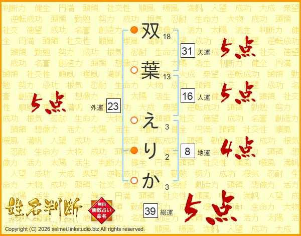双(18画)葉(13画) え(3画)り(2画)か(3画)