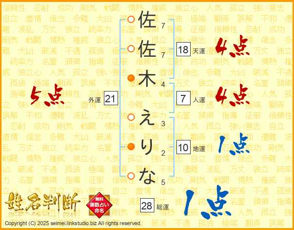 佐(7画)佐(7画)木(4画) え(3画)り(2画)な(5画)