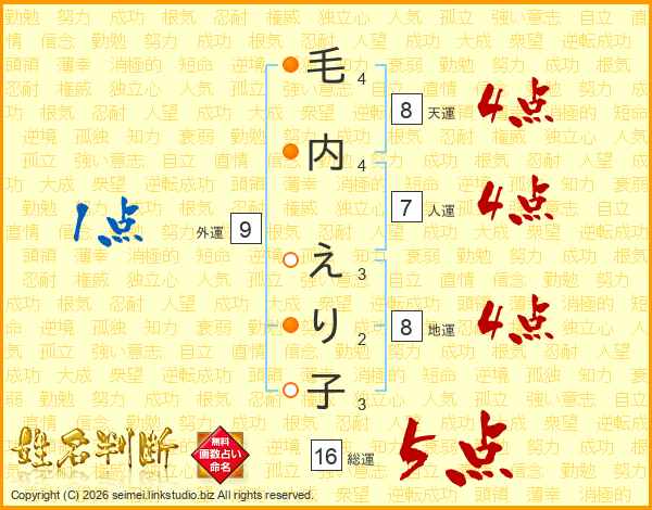 毛内えり子さんの人運は7画の4点!