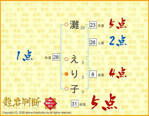 灘えり子さんの総運は31画の5点!