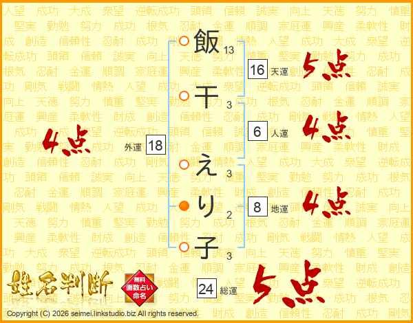 飯干えり子さんの総運は24画の5点!