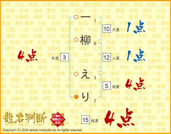一柳えりさんの総運は15画の4点!