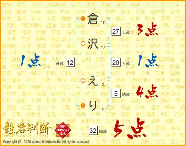 倉沢えりさんの天運は27画の3点!