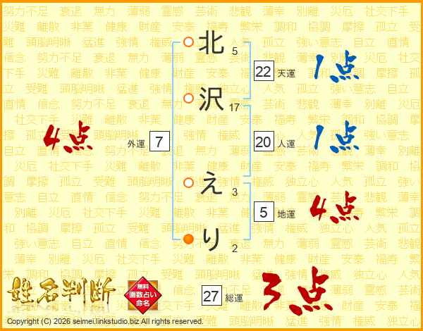 北沢えりさんの総運は27画の3点!