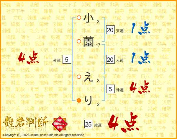 小薗えりさんの総運は25画の4点!