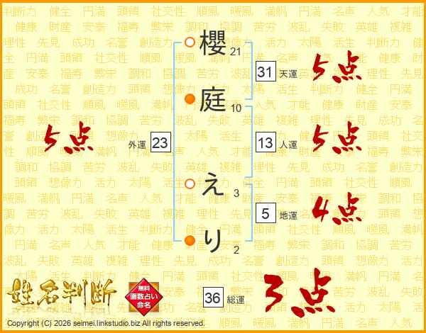 櫻庭えりさんの天運は31画の5点!