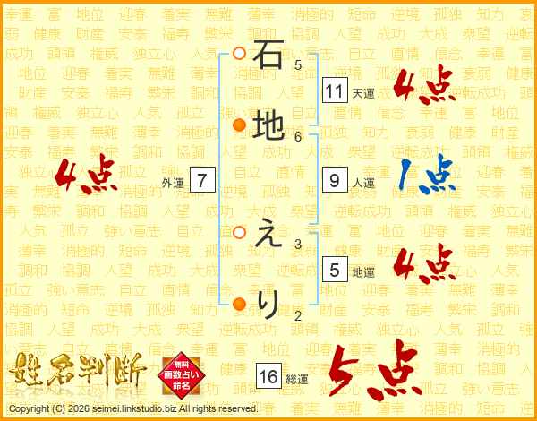 石地えりさんの総運は16画の5点!