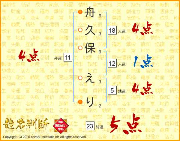 舟久保えりさんの総運は23画の5点!
