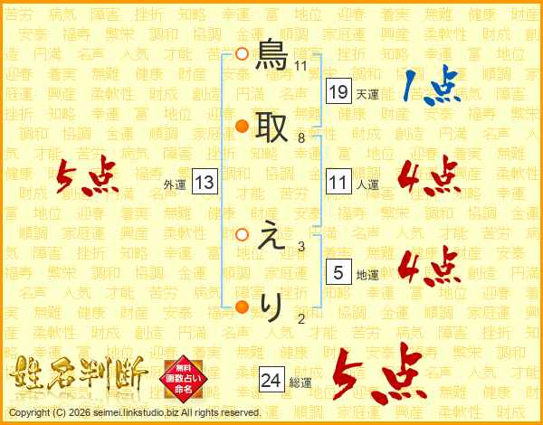 鳥取えりさんの総運は24画の5点!