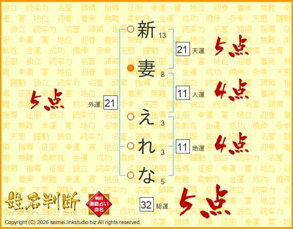 新妻えれなさんの外運は21画の5点!