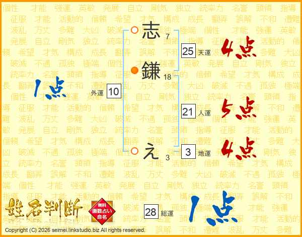 志鎌えさんの天運は25画の4点!