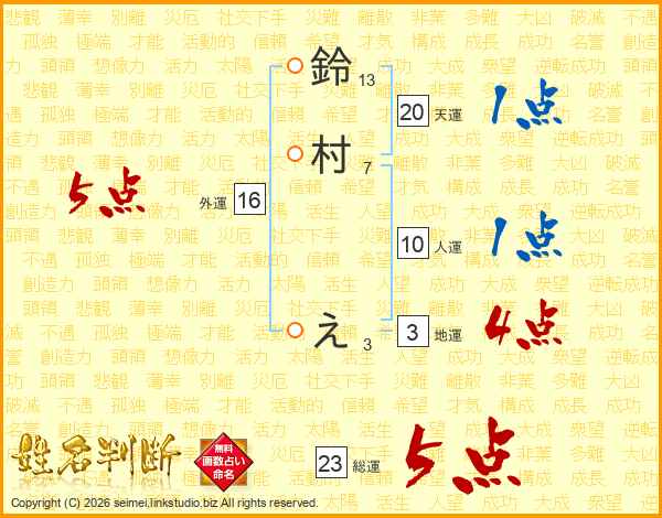 鈴村えさんの総運は23画の5点!