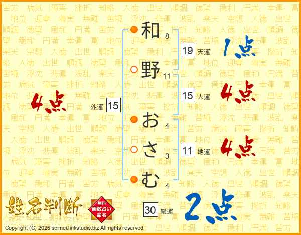 和野おさむさんの総運は30画の2点!