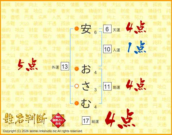 安おさむさんの総運は17画の4点!