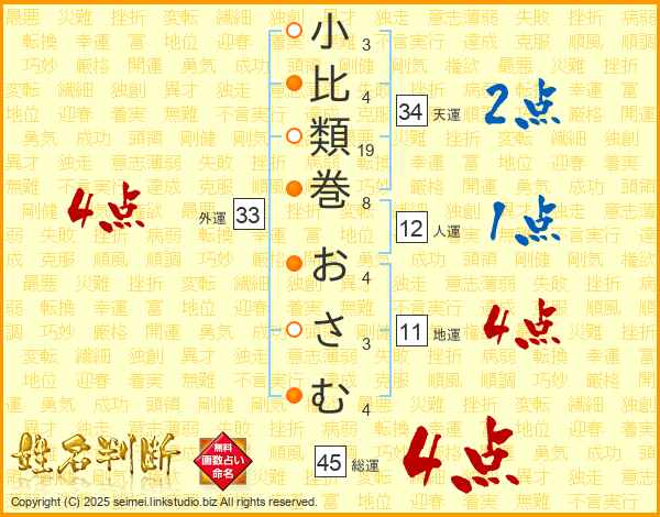 小比類巻おさむさんの総運は45画の4点!