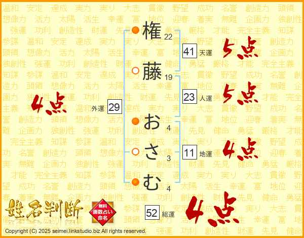 権(22画)藤(19画) お(4画)さ(3画)む(4画)