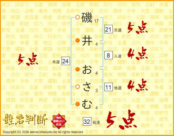 磯井おさむさんの総運は32画の5点!
