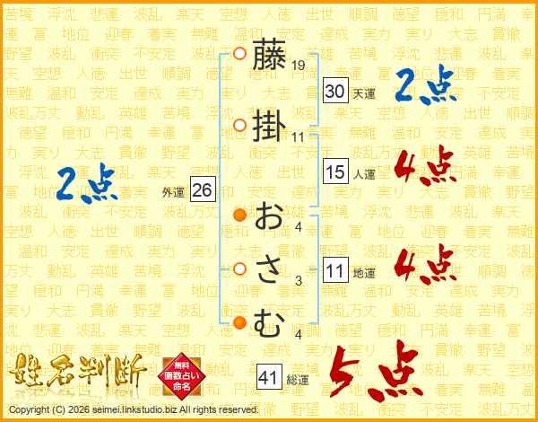 藤(19画)掛(11画) お(4画)さ(3画)む(4画)