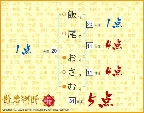 飯尾おさむさんの総運は31画の5点!