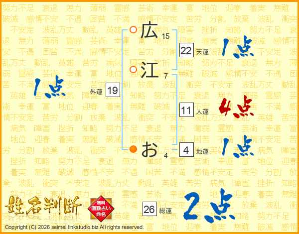 広江おさんの総運は26画の2点!