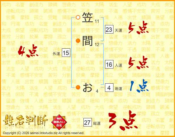 笠間おさんの総運は27画の3点!
