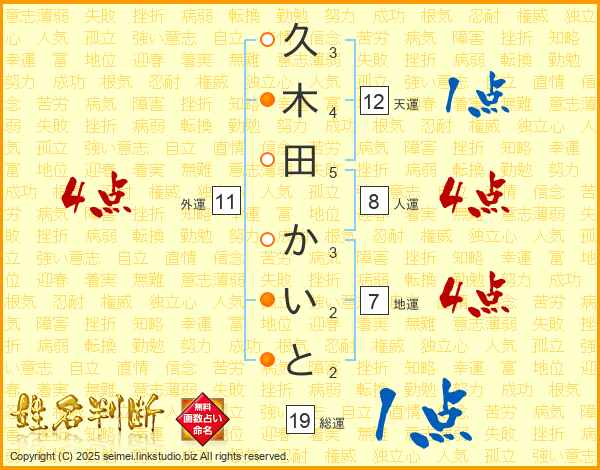 久(3画)木(4画)田(5画) か(3画)い(2画)と(2画)