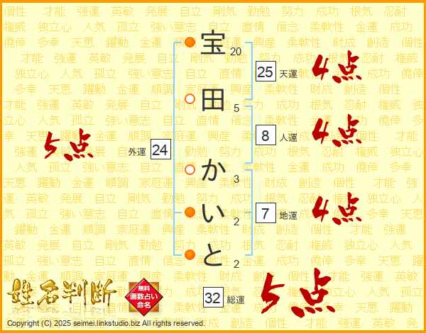宝田かいとさんの天運は25画の4点!