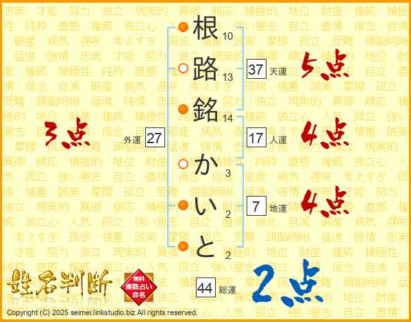 根路銘かいとさんの総運は44画の2点!