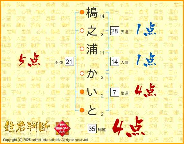 槝之浦かいとさんの総運は35画の4点!