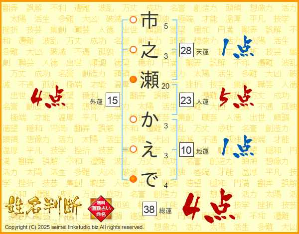 市(5画)之(3画)瀬(20画) か(3画)え(3画)で(4画)