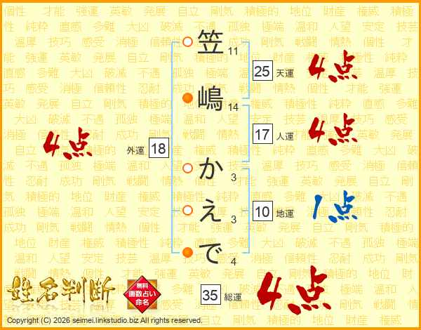 笠嶋かえでさんの総運は35画の4点!