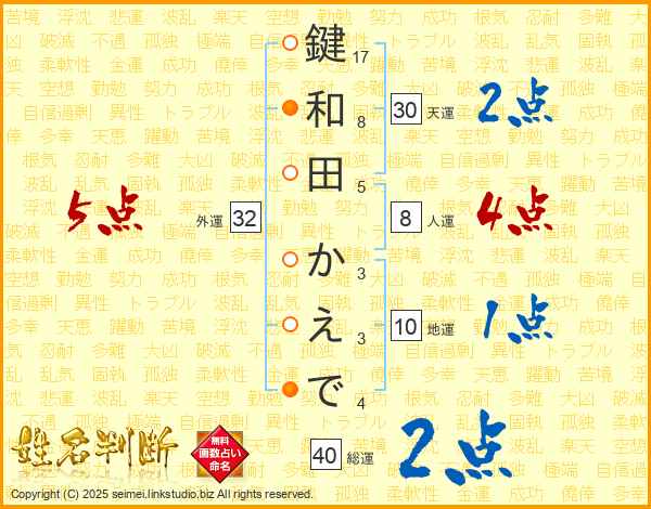 鍵和田かえでさんの総運は40画の2点!