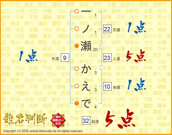 一(1画)ノ(1画)瀬(20画) か(3画)え(3画)で(4画)