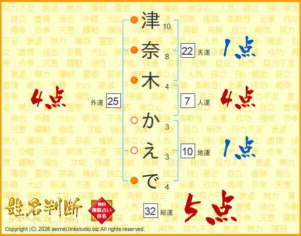 津奈木かえでさんの外運は25画の4点!