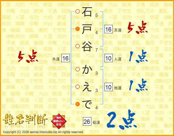 石戸谷かえでさんの総運は26画の2点!