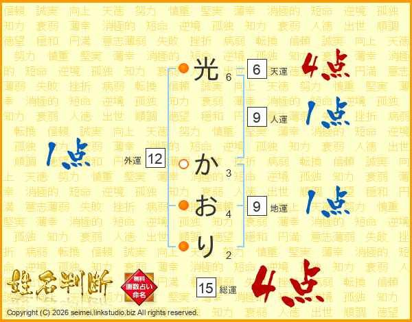 光かおりさんの総運は15画の4点!