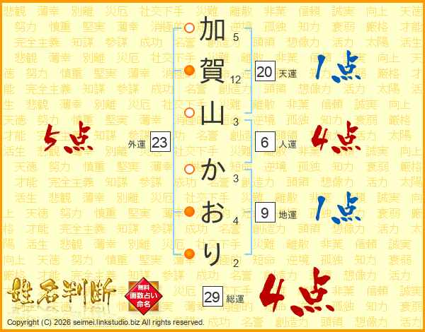 加賀山かおりさんの総運は29画の4点!