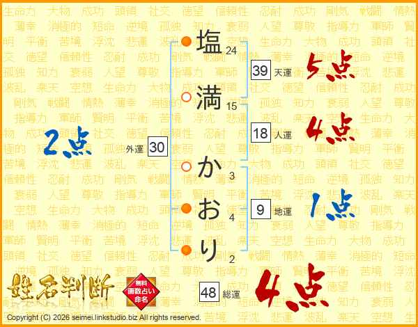 塩満かおりさんの総運は48画の4点!