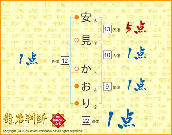 安見かおりさんの総運は22画の1点!