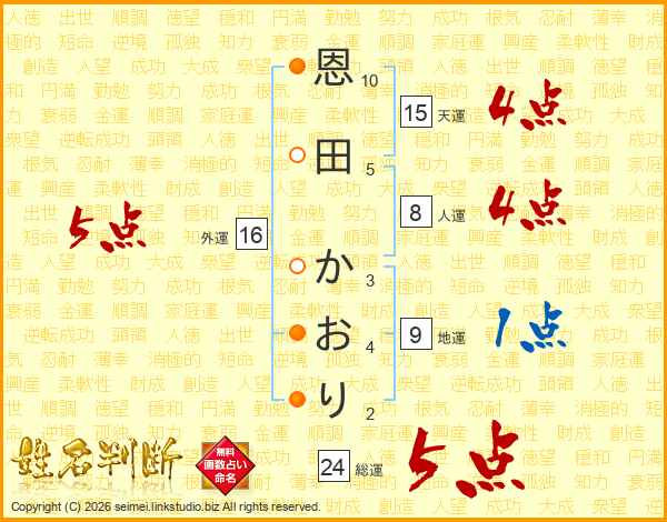 恩田かおりさんの外運は16画の5点!