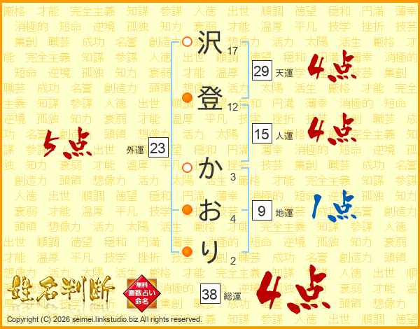 沢登かおりさんの総運は38画の4点!
