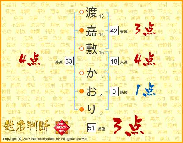 渡嘉敷かおりさんの外運は33画の4点!
