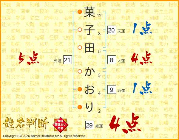 菓子田かおりさんの総運は29画の4点!